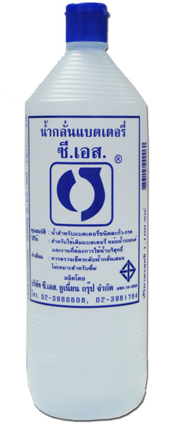 น้ำกลั่นแบตเตอรี่รถยนต์ตราซี.เอส. ภายใต้การผลิตของบริษัท ซี.เอส.ยูเนี่ยน