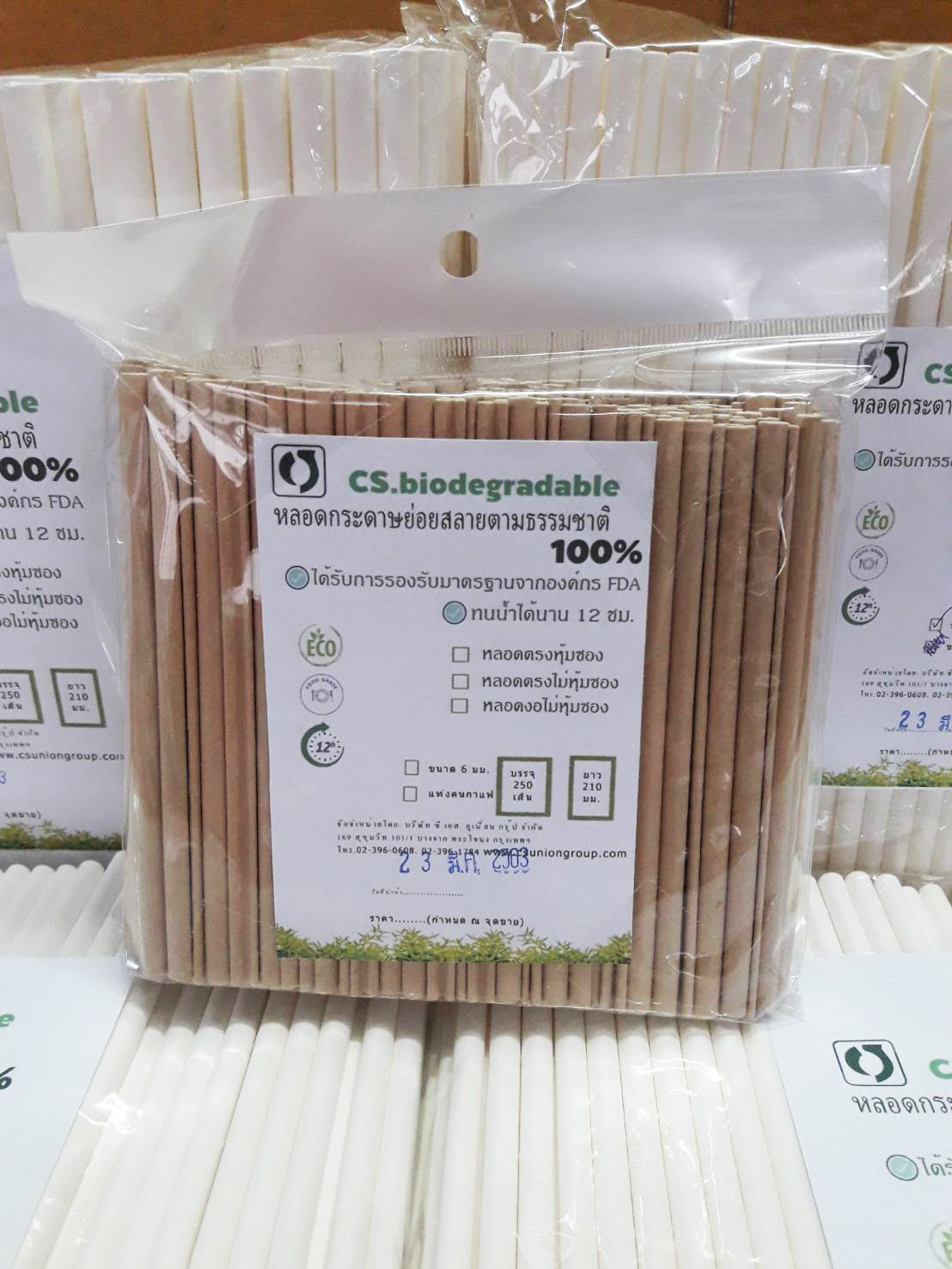 แท่งคนกาแฟ ย่อยสลาย100% ไม่มีกลิ่นกระดาษ สามารถแช่น้ำได้ 12 ชม. มาพร้อมห่อสีน้ำตาล